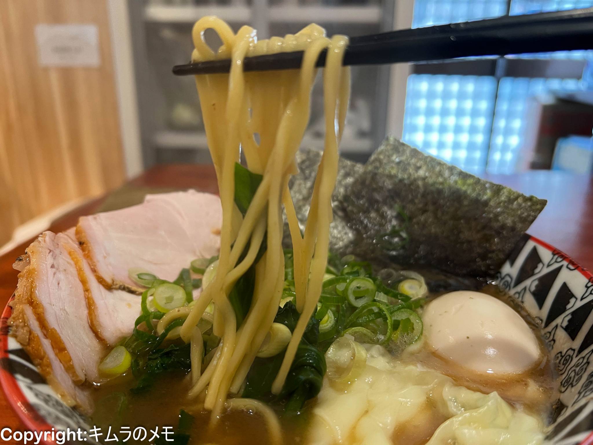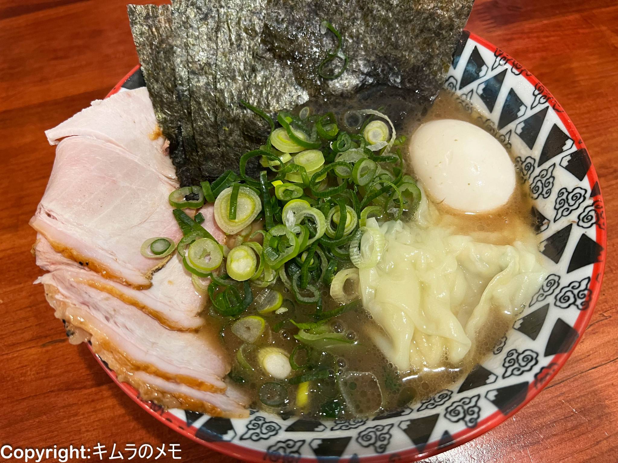 ただ、ワンタンは味わいそのものは街中華で見かけるようなサイズ感でほんのりとニラ感を感じさせる、単品で頂く分には普通に美味しく頂けるものなのだが、濃厚でクリーミーなトンコツ醤油スープとの相性は若干微妙。