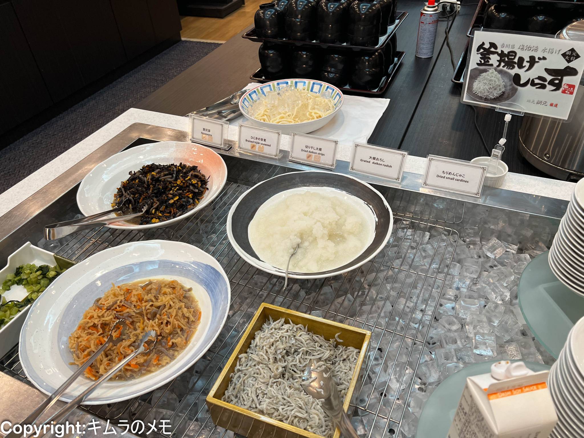 一方で、玉子やしらすなど、地元産の食材にこだわっている部分もあり、特に和食の「ご飯のお供」についてはなかなか充実していた。