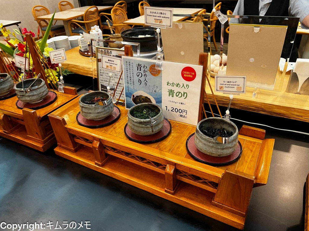そして佃煮的なものも数種類用意されており、和食は主食よりもご飯のお供系が多いという印象。