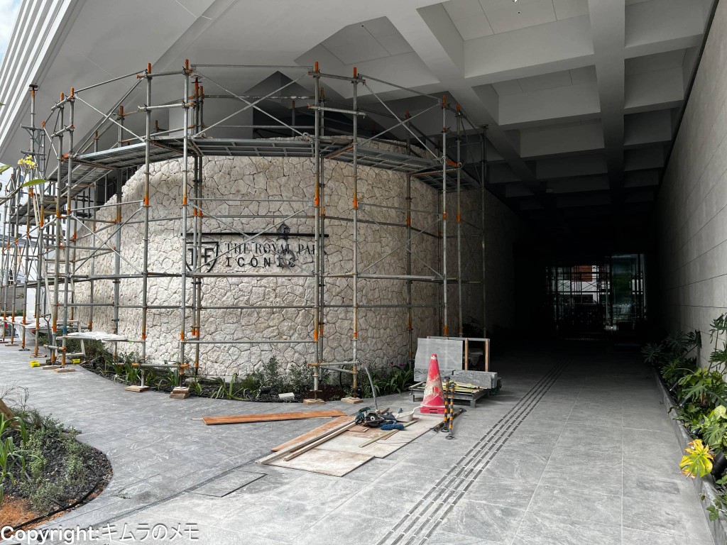 ホテルの名前が壁に刻まれてはいるものの、まだ絶賛工事中という感じであった。