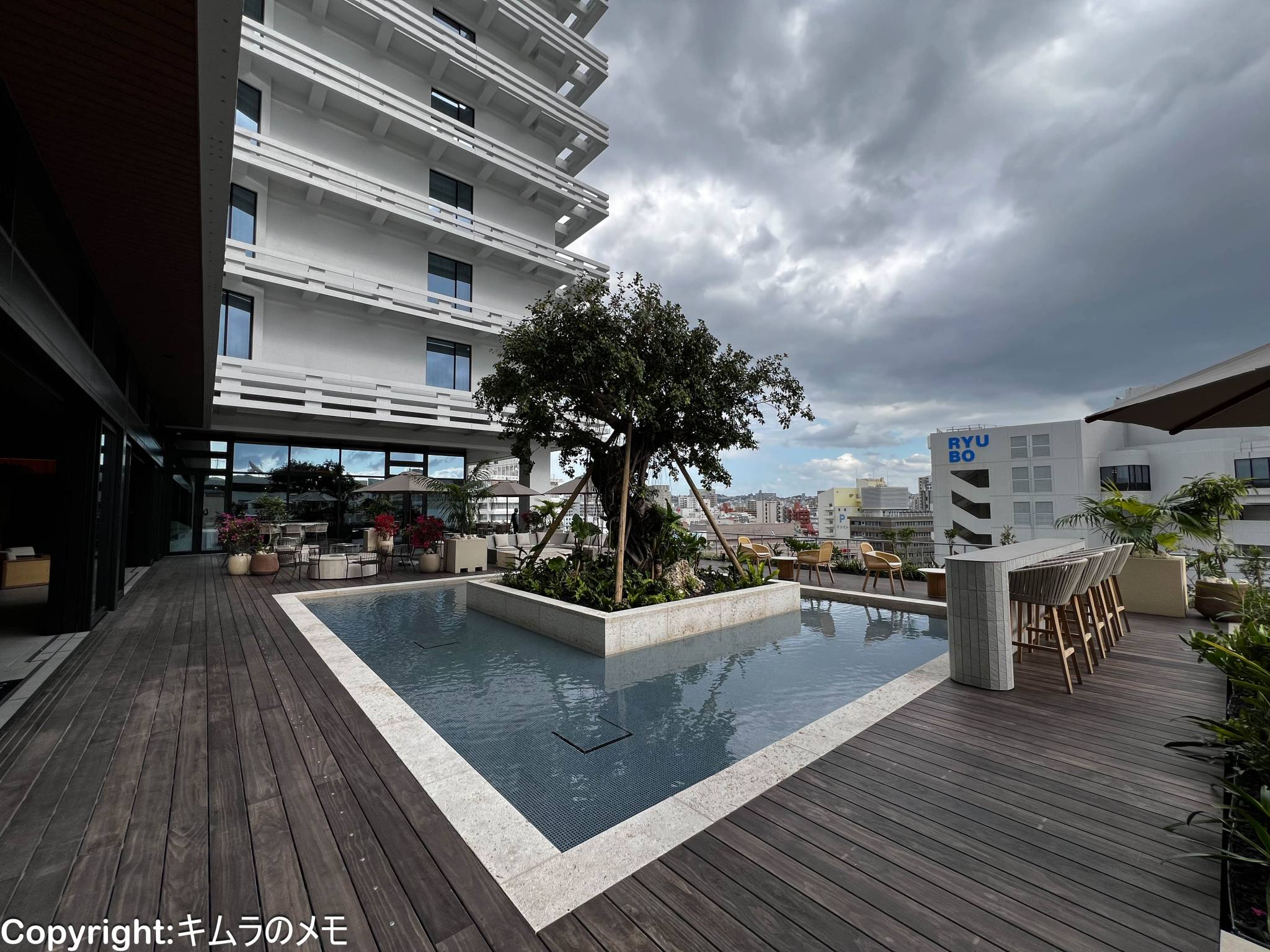7Fは完全にパブリックスペースとなっており、ロビーエリアに加えてプールサイドバーやジャグジー、レストランなどがある。