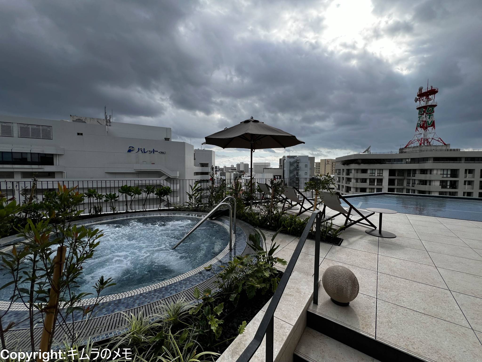 ただ、プールは泳ぐというサイズ感ではなくプールサイドでゆったりと寛ぐような場所であったり、客室内にはPCを使って快適に作業をできるテーブルがなかったりと、目的次第では少々使いにくさもある。