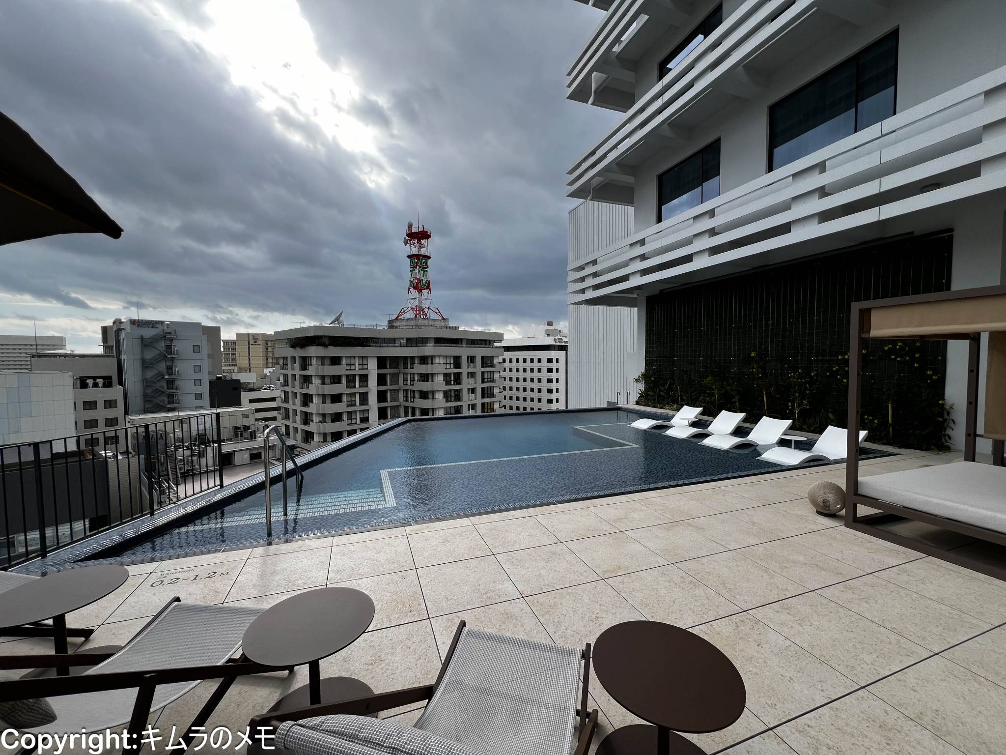プールはその半分程度は水深が浅く、泳ぐというよりは水に浸かるもしくはプールサイドの椅子でゆっくりするという使い方になりそう。