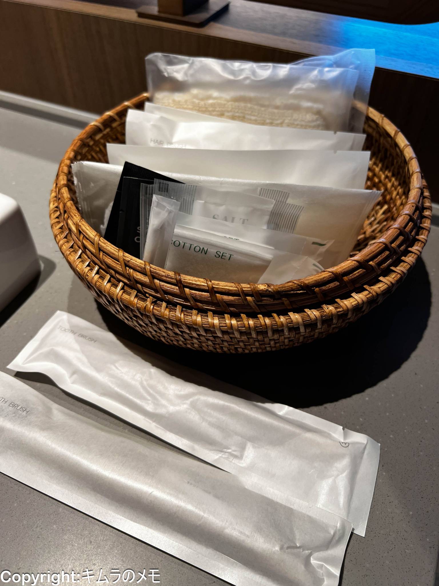 歯ブラシや髭剃り、バスソルトなど、比較的充実している。