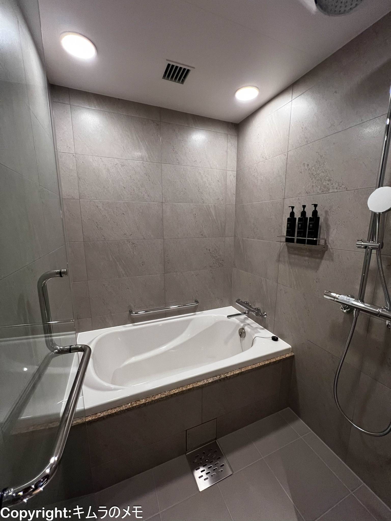 バスタブエリアはバスタブとシャワーが別になった広々とした作りになっている。