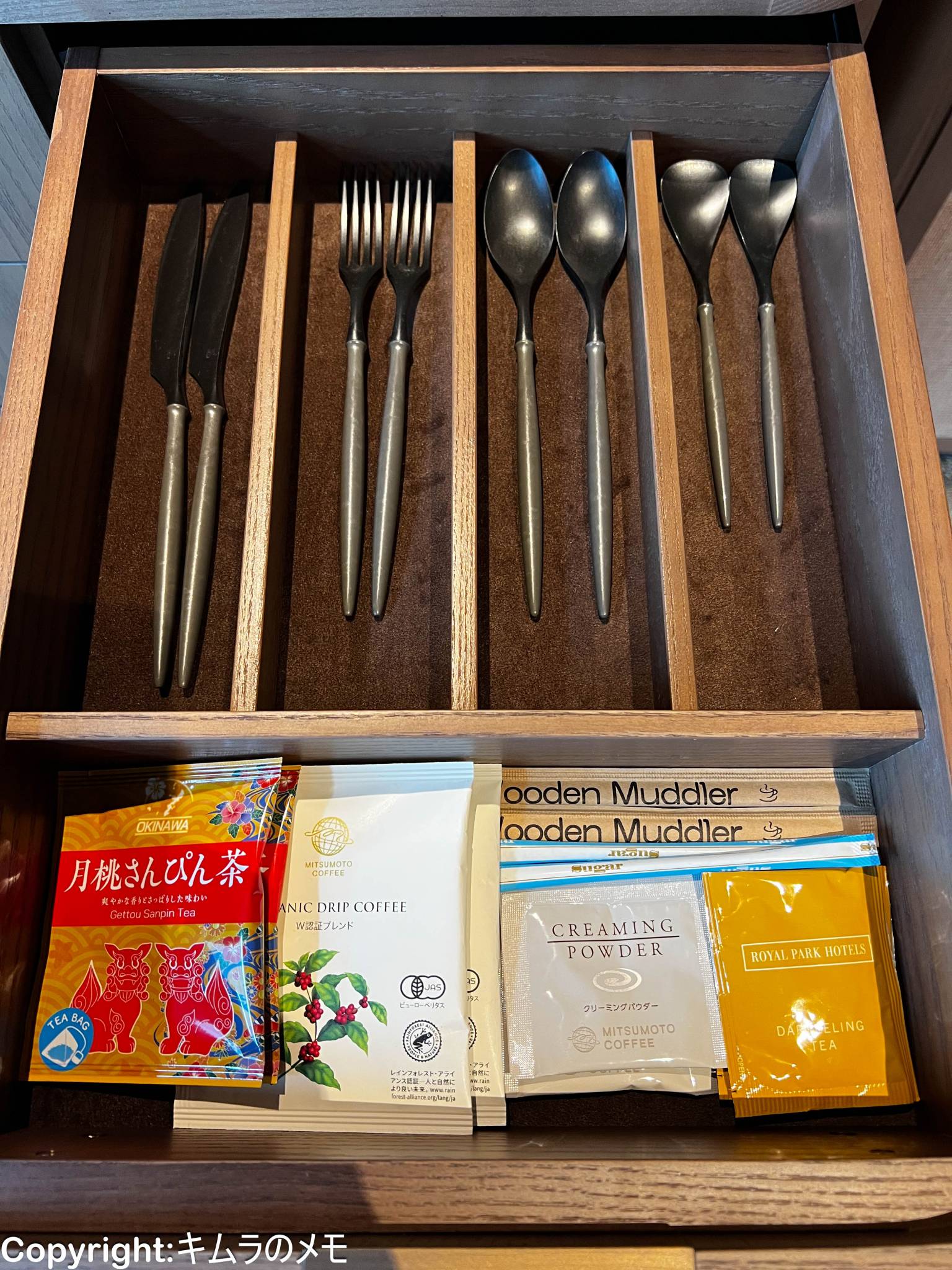 カトラリーは充実しており、デフォルトでスプーンやフォークなどが用意されている。