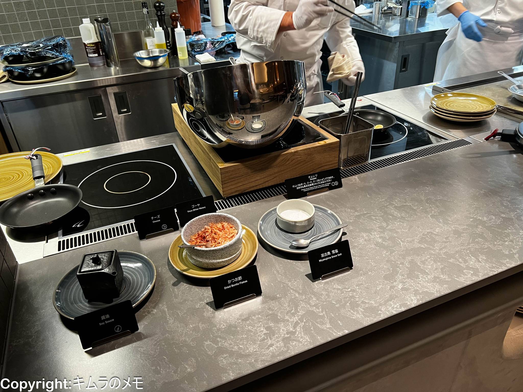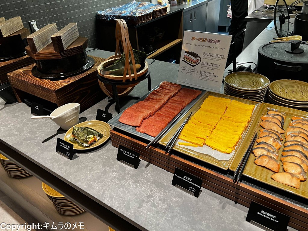 また、ライブクッキングでは沖縄そばや定番の玉子料理、セルフサービスのコーナーではタコスやポーク玉子おにぎりなどを提供しており、品数そのものはそこまで多いという感じではないが、食事を食べるだけでなく楽しむような感じとなっている。