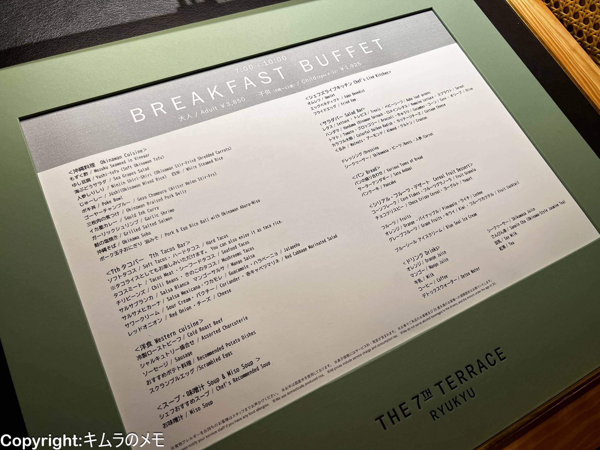 朝食会場は7Fのロビーエリアの横にあるオールデーダイニング「The 7th Terrace Ryukyu」となる。