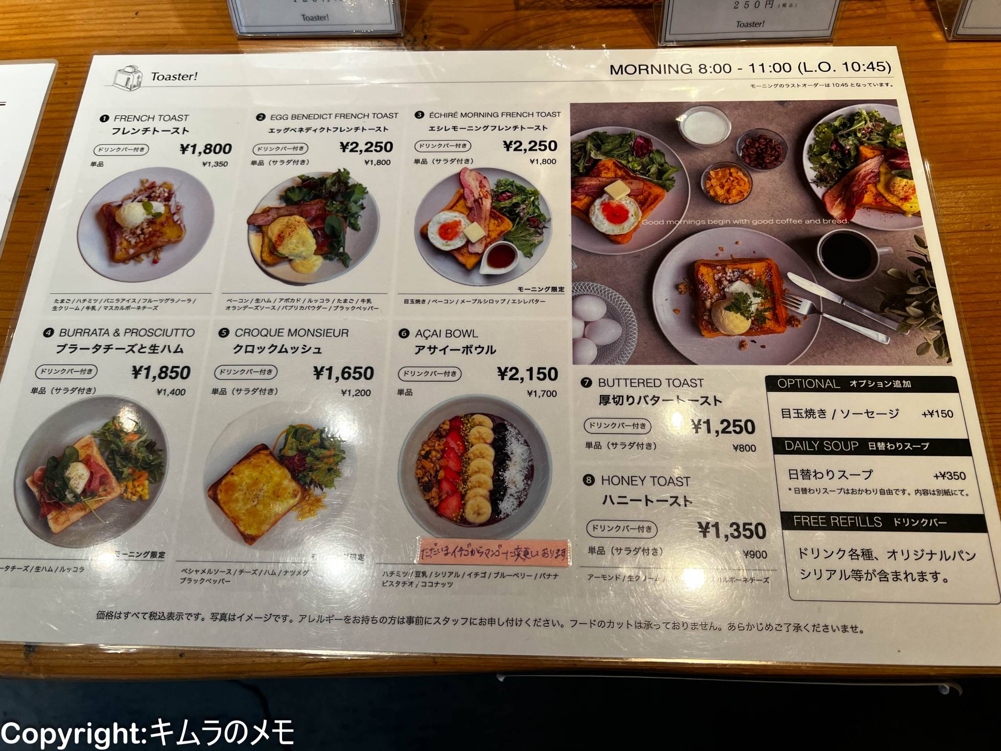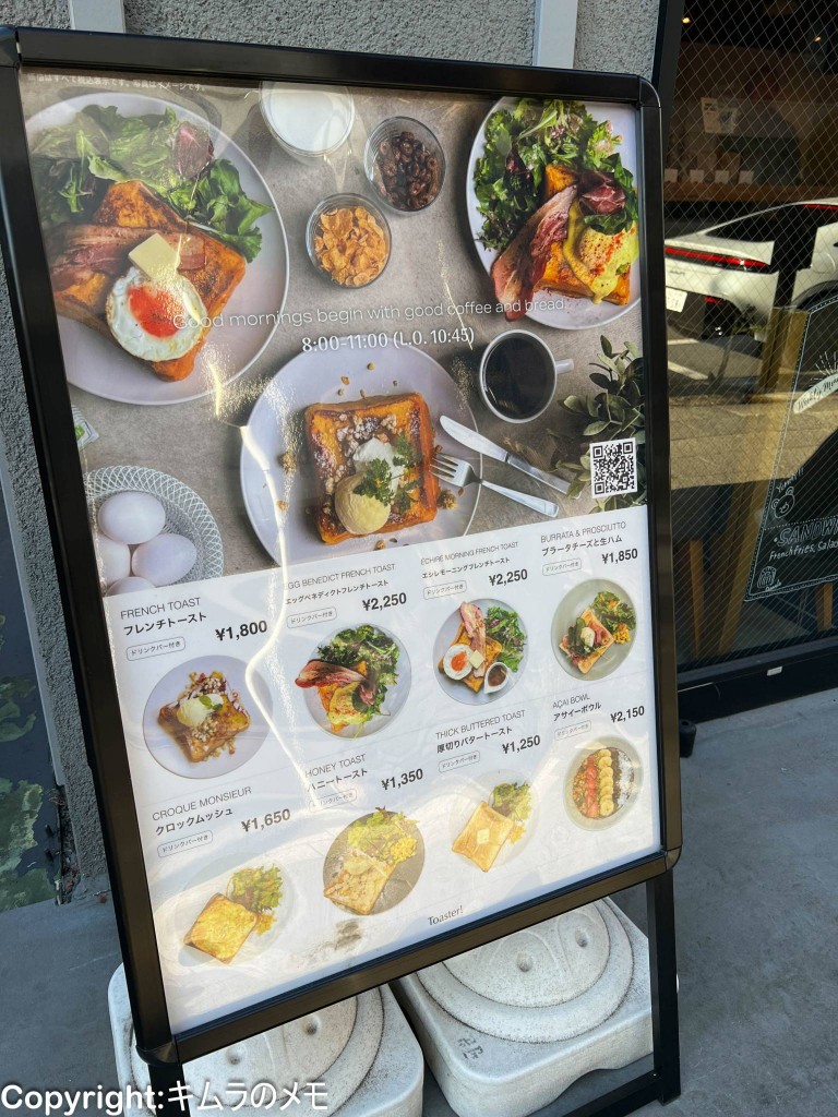 今回はモーニングの時間帯に訪れたのだが、店先にはメニューが写真付きで置かれている。