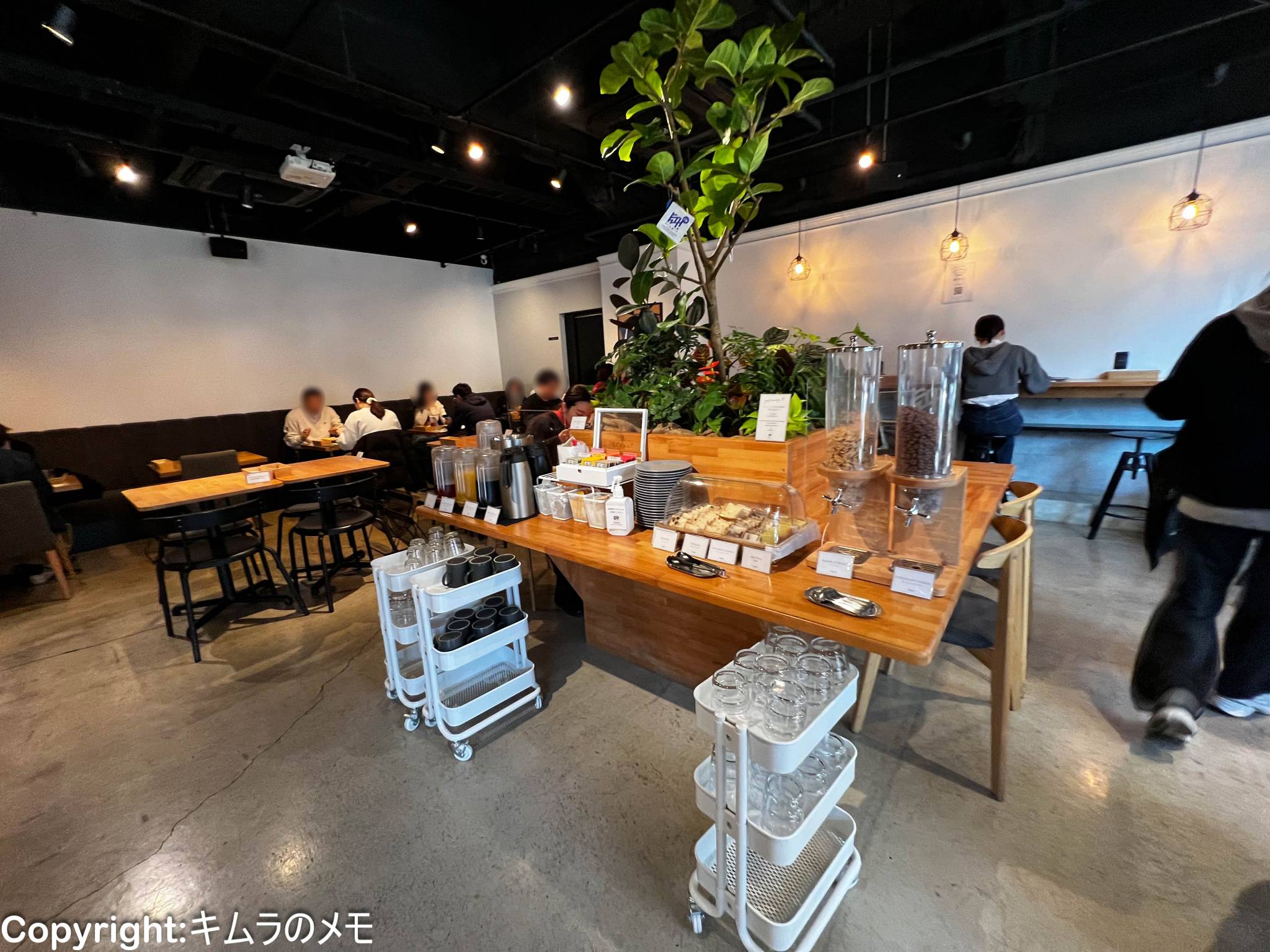 広々とした空間が確保され、コンクリート打ちっ放しの床や無機質ながらもオシャレ感のある店内はまだ3割程度の客入りであった。