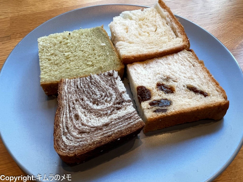 いずれのパンもそれぞれの素材の風味がしっかりと感じられ、特に抹茶は濃厚な抹茶の香りと味わいを楽しめる。