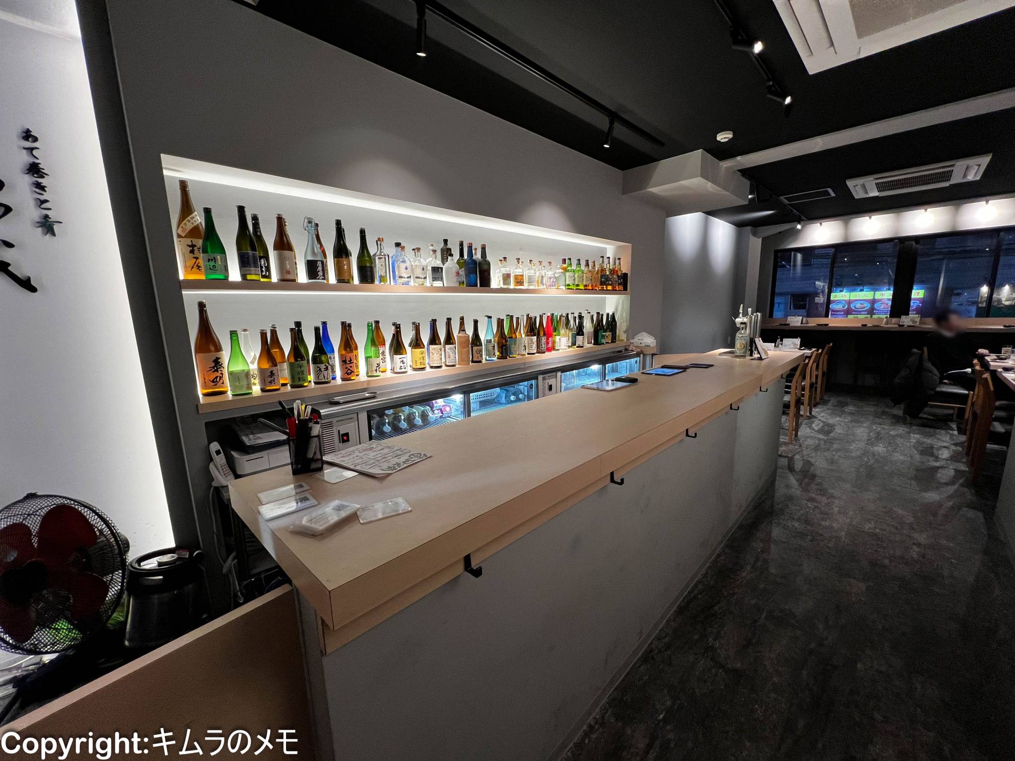 こちらお店は野毛エリアにしてはオシャレ感のある造りとなっており、入口付近は立ち飲みスタイルで色々はお酒を飲める襟となっており、店舗奥側に席がある。