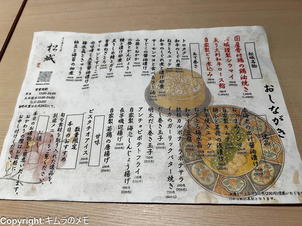 外部リンク:野毛 あて巻きと肴 松城の食べログページへのリンク