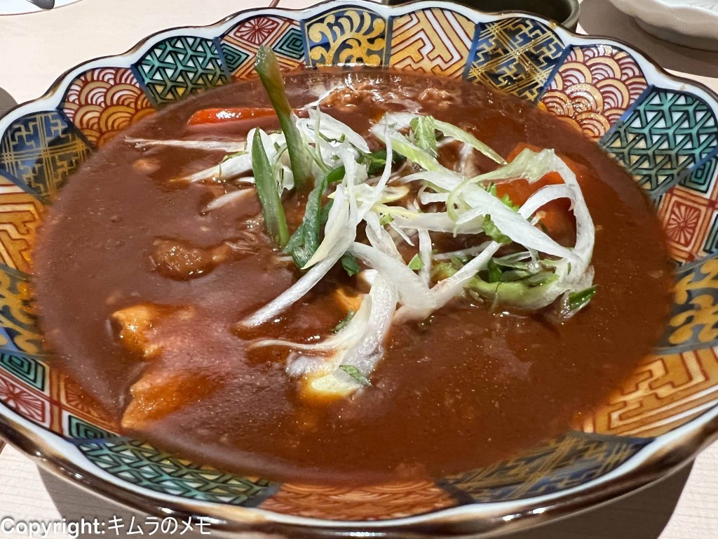 いわゆるもつ煮ではあるが、味わいはシチューに近い感じで、味噌の風味は控えめという印象。