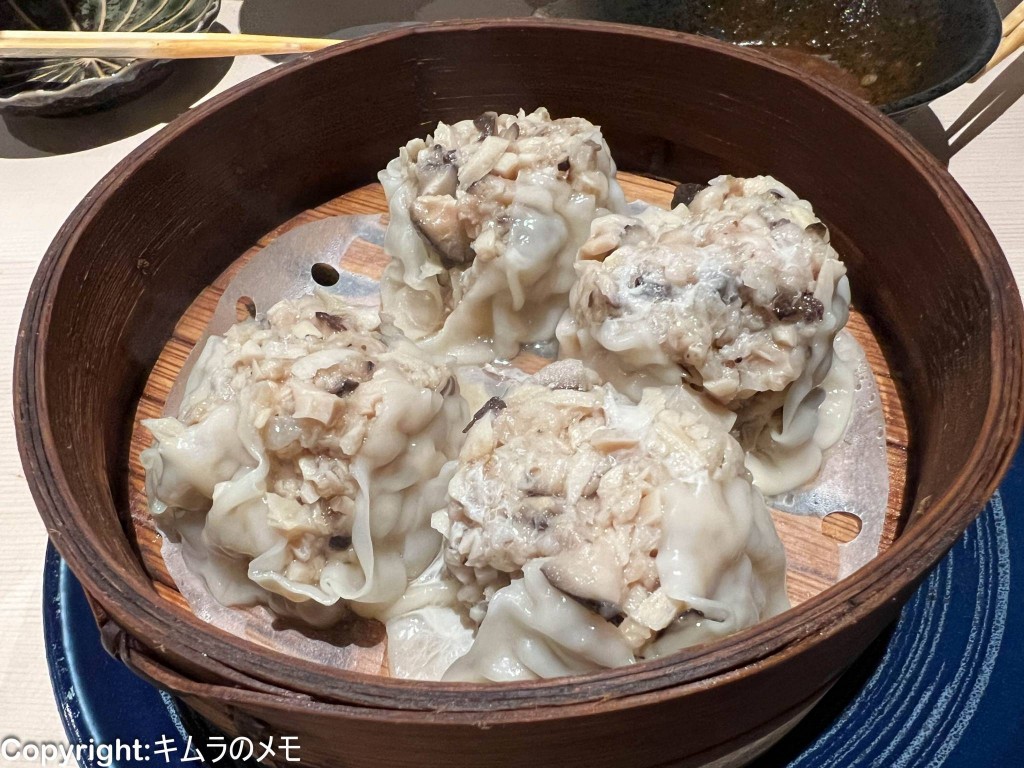 その他に、しいたけの風味がしっかりと効き柔らかくフワフワっと仕上げられている「松城謹製シウマイ」や、程よいレア感に鶏油が加わることで柔らかくも香ばしく仕上げた「国産骨付鶏の鶏油焼き」などの料理もあり、あて巻き以外の料理も充実している。