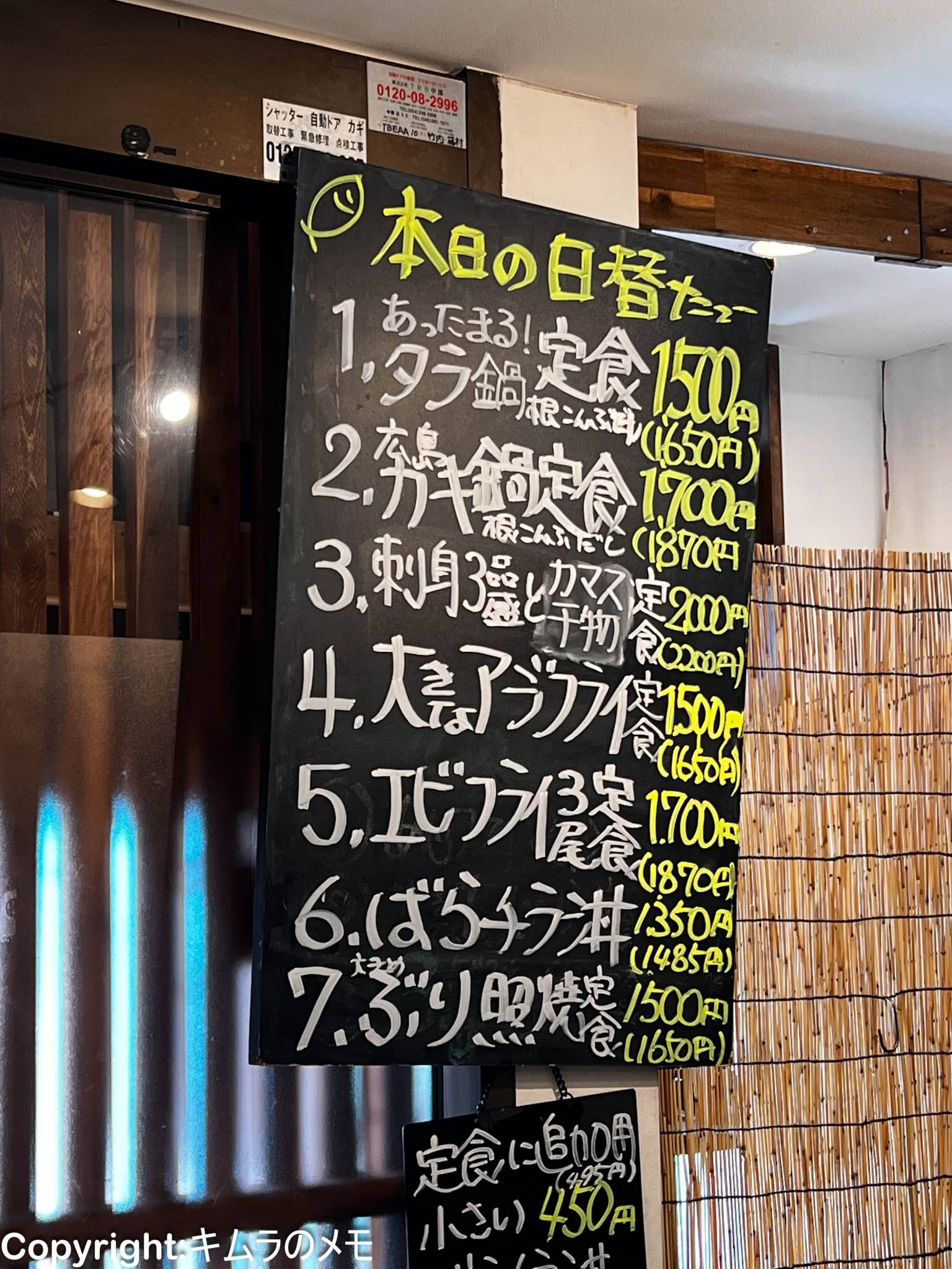 こちらのお店は魚屋が経営している定食店ということで、メニューは当然魚介系がメイン。