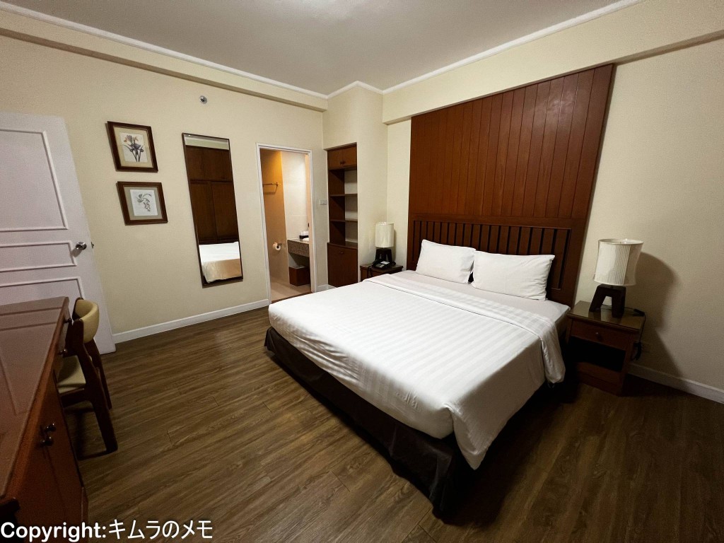 また、あくまでサービスアパートメントということで、客室そのものは広いのだがホテルのようなラグジュアリー感は全く期待できず、日本であればデフォルトで置かれている客室内のスリッパもフロントでリクエストしないと貰えない。