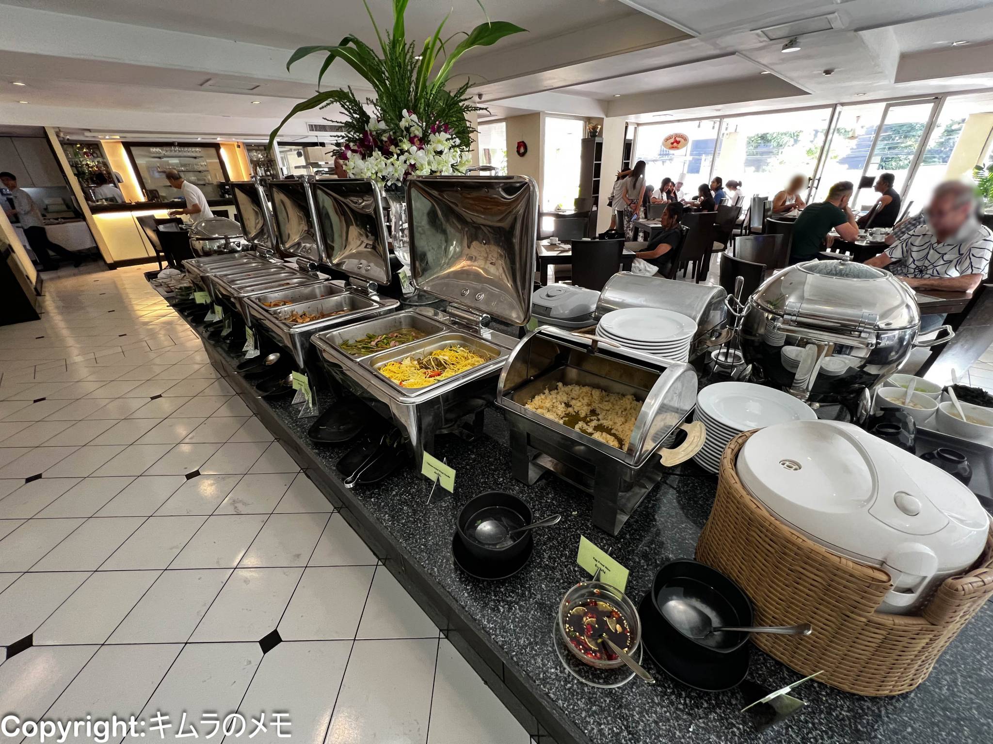 同じカンタリーヒルズ系のホテルということでどうしてもチェンマイと比較してしまうのだが、まず品数が圧倒的に少なく、ライブクッキングコーナーが無いのが大きな違い。