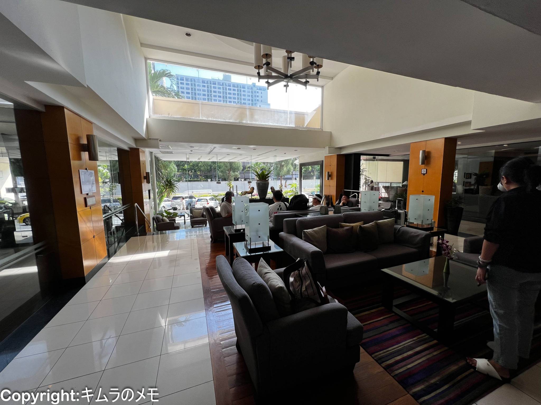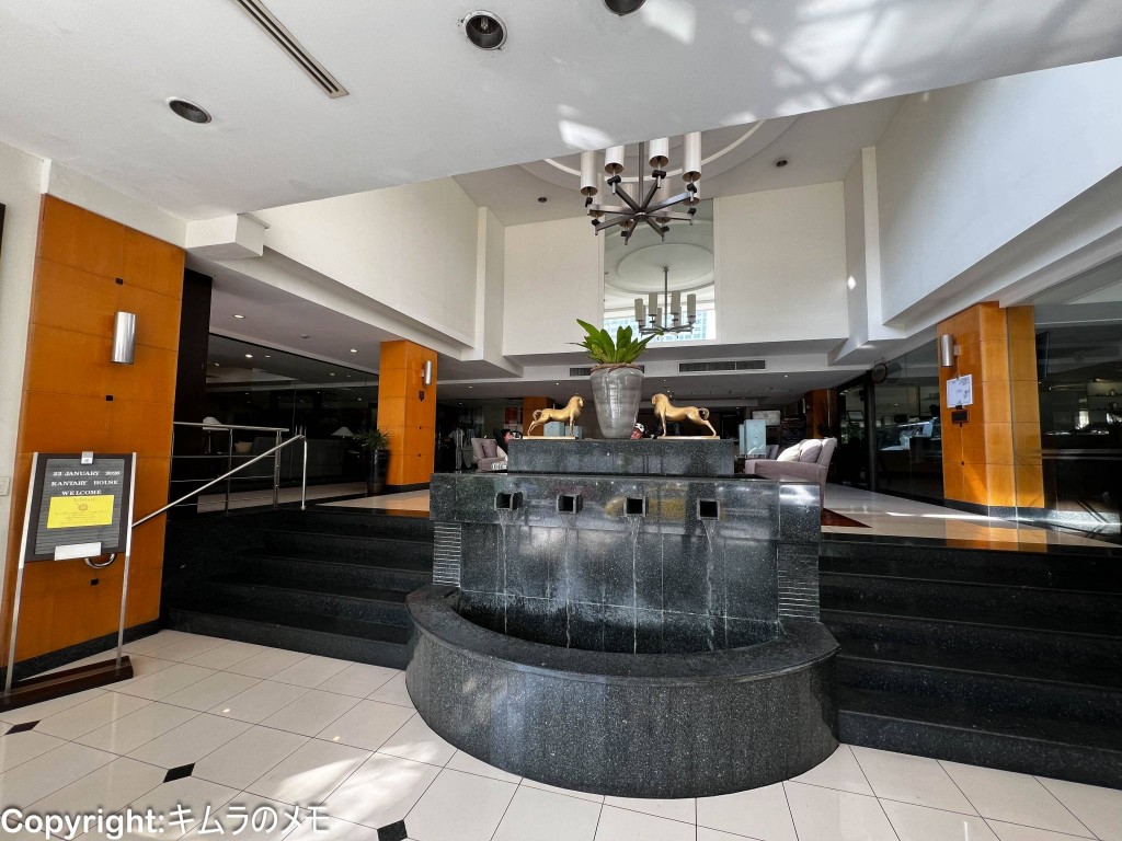 ロビーエリアに入ると階段を半フロア上がった先にフロントがある。