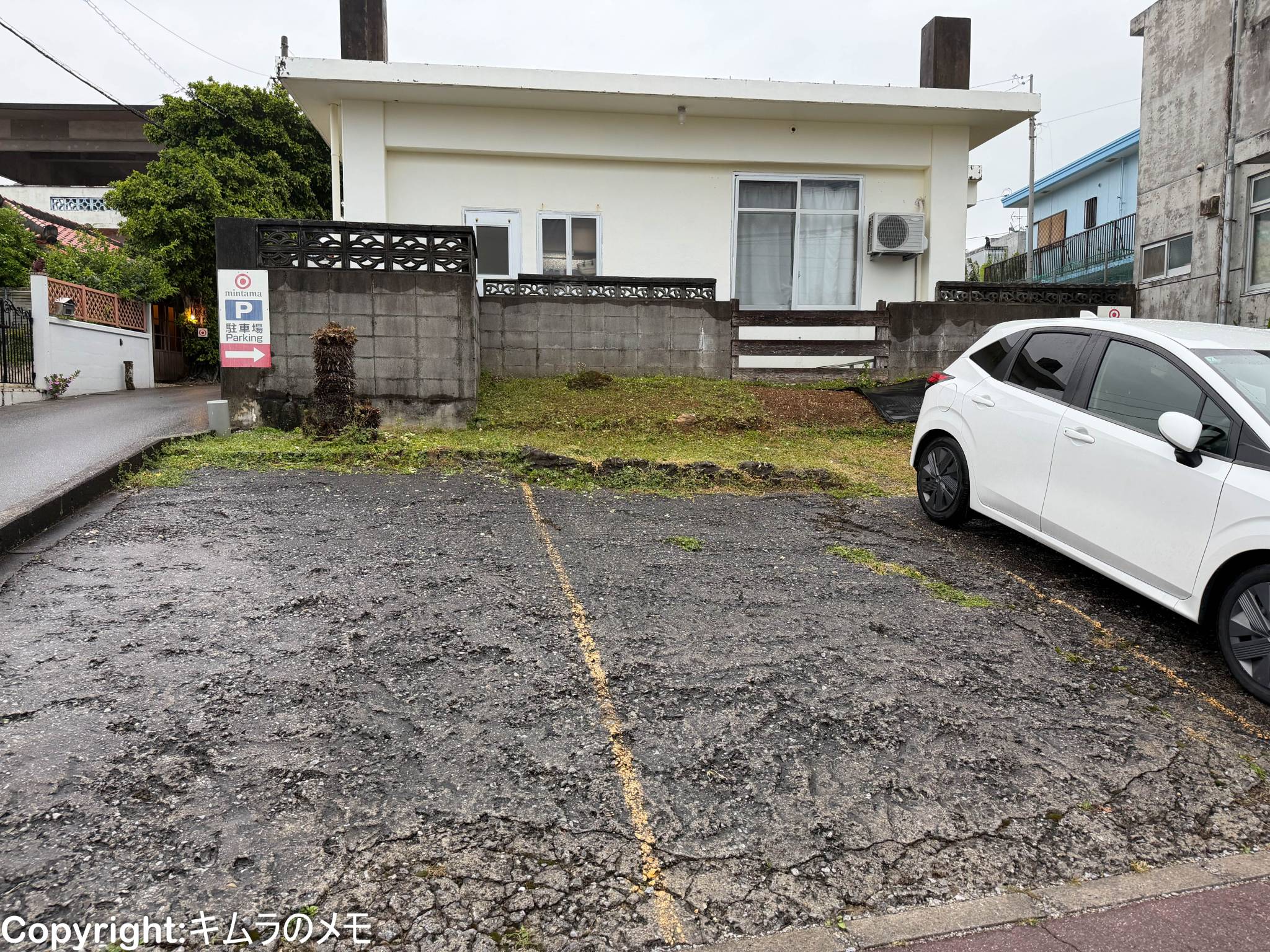 店舗は写真左奥となるのだが、駐車場は表通り沿いに4台分確保されている。