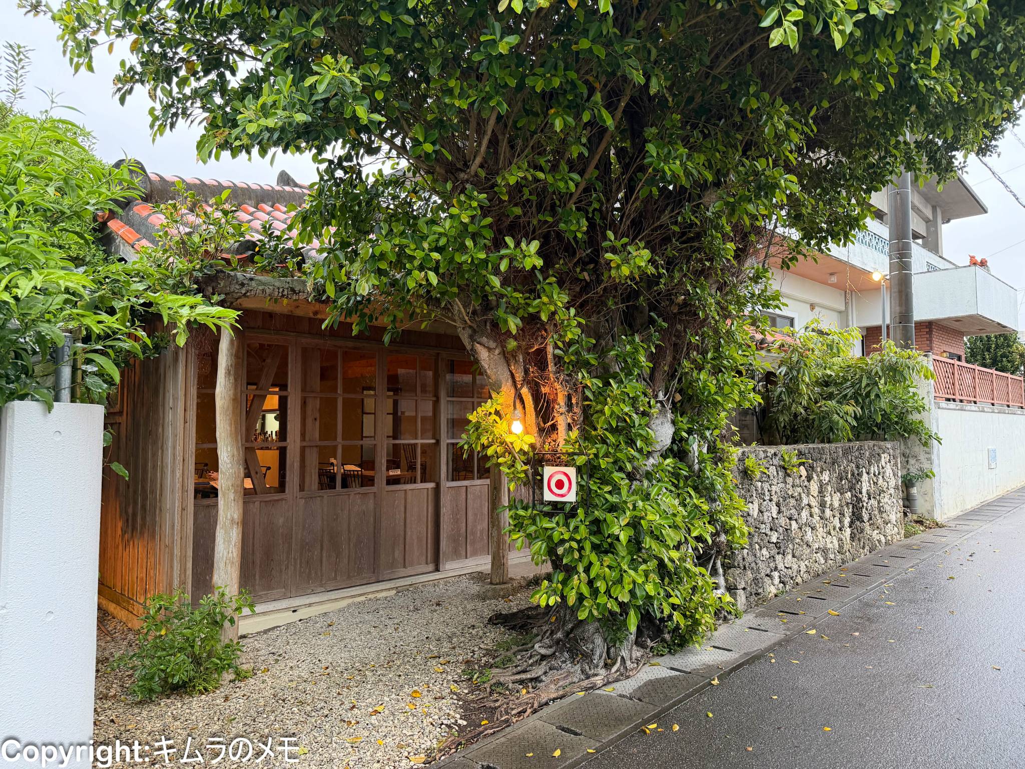 一見すると普通の古民家に見えるのだが、木と垣根と先にある引き戸の向こうに飲食店らしい雰囲気の店内が見える。