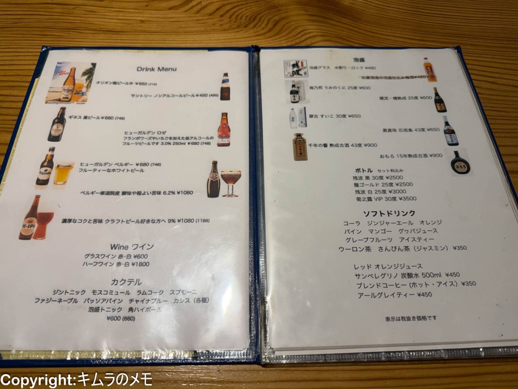1名あたり6000円程度と沖縄で頂く夕食という意味ではそれなりの金額になった感じはある。