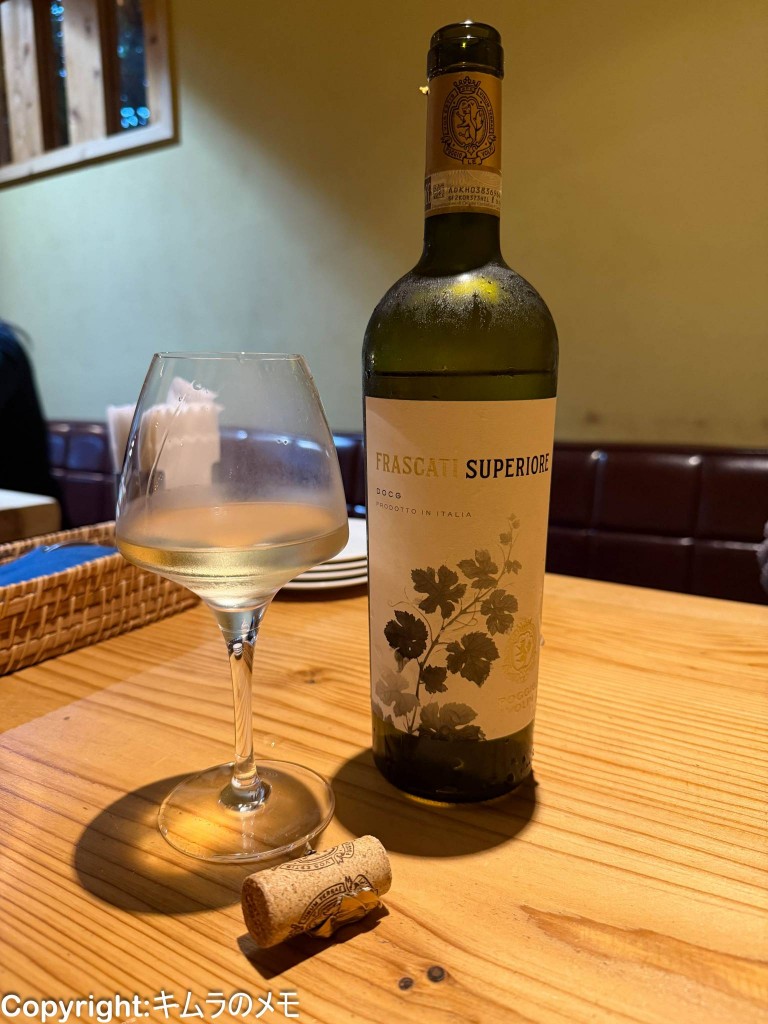 そしてワインはボトルでイタリアの「フラスカティ スペリオーレ(2800円)」をセレクトした。