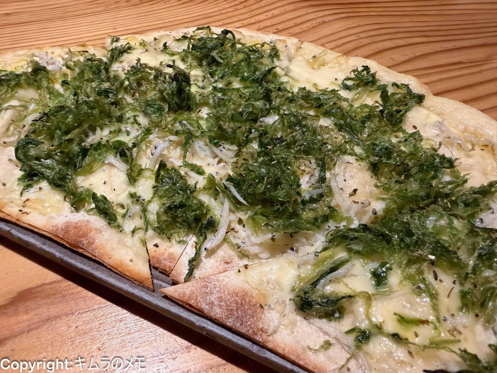 しばらくすると「アーサとしらすのピザ」が提供された。