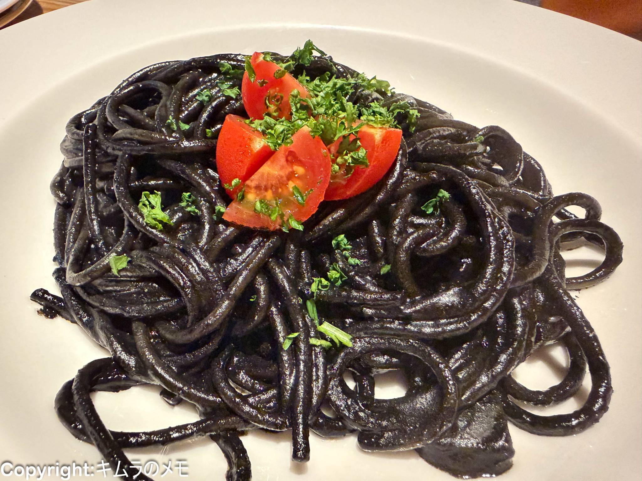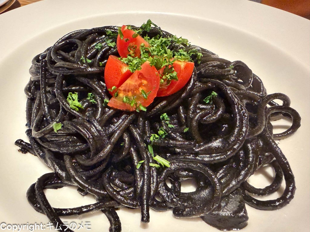 続いて「イカ墨パスタ」が提供された。