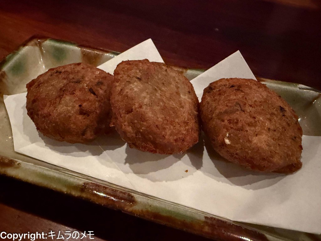 この料理はこちらの店オリジナルらしく、田芋(ターム)に豚肉やかまぼこ、しいたけを混ぜて使って作ったコロッケとのこと。