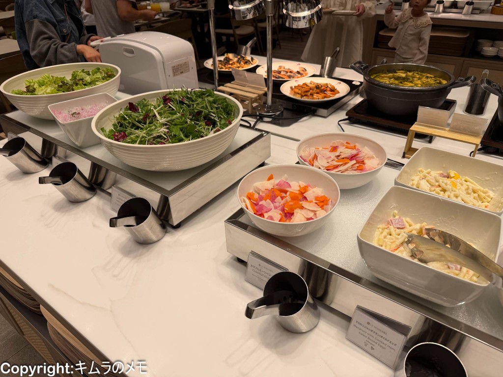 ビュッフェコーナーはレストランの一番奥に位置し、料理の種類もかなり多い印象。
