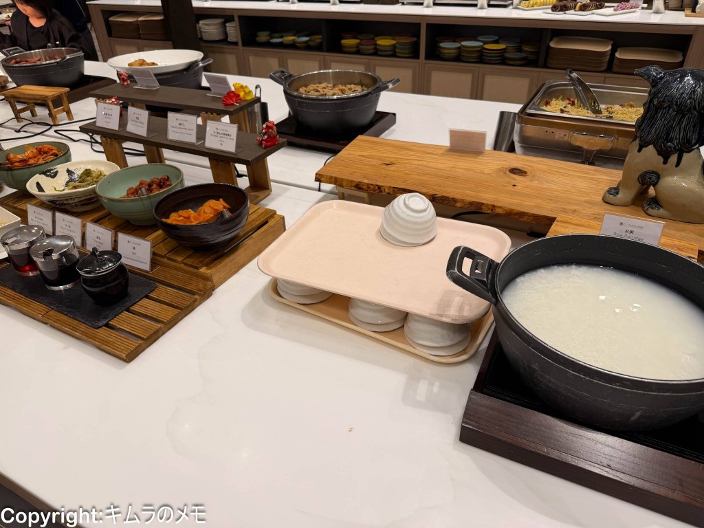 そしてご飯以外にもお粥があり、お役に入れる具材も複数種用意されている。
