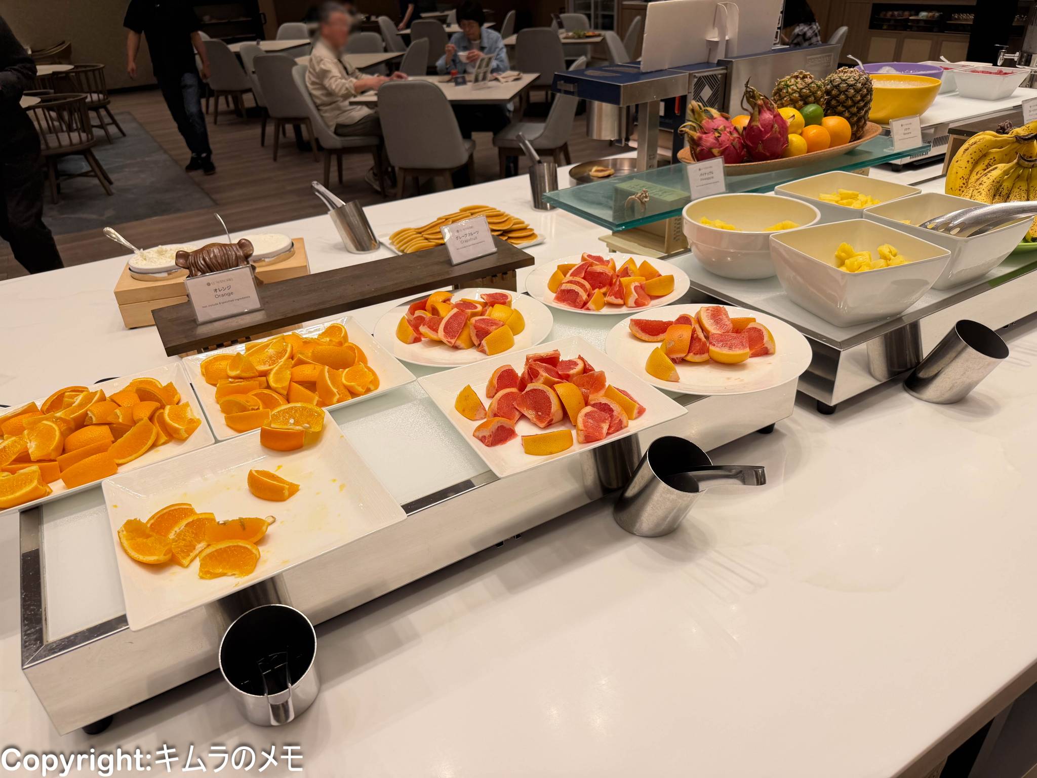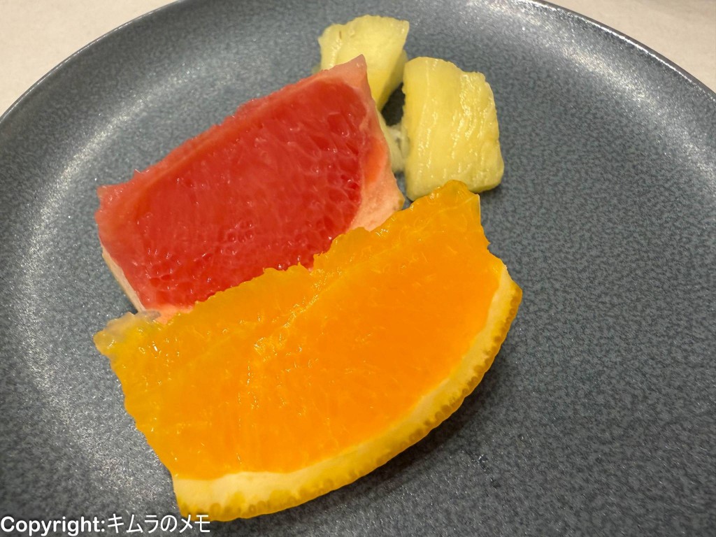 フルーツコーナーはフレッシュフルーツとしてオレンジとピンクグレープフルーツが用意されている。