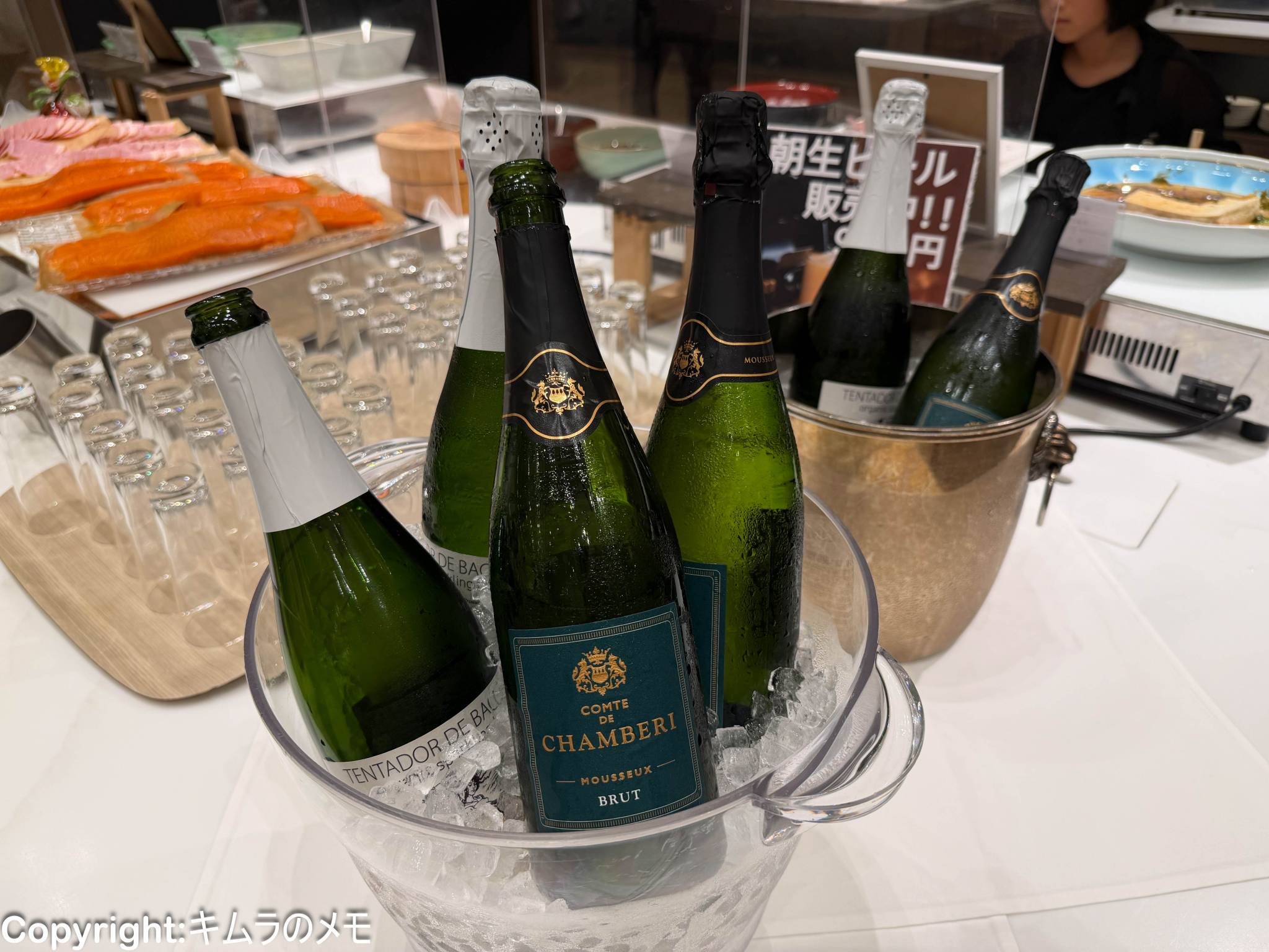 そしてこちらの朝食ビュッフェのウリであるスパークリングワインも用意されている。