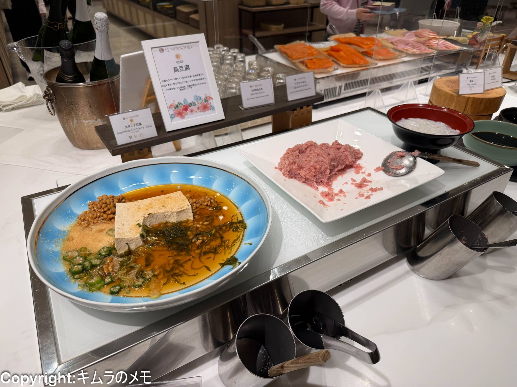 こちらには島豆腐やマグロのタタキ、イカソーメンが用意されている。