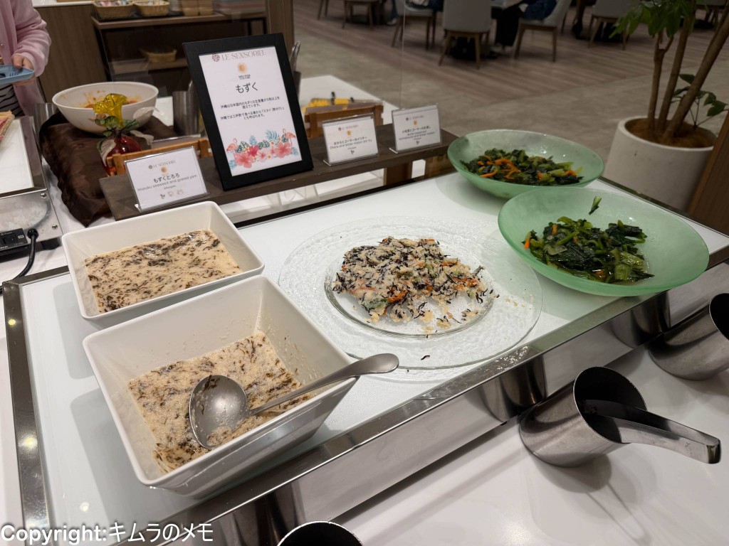 こちらにはもずくとろろやゴーヤを使った料理などが用意されている。