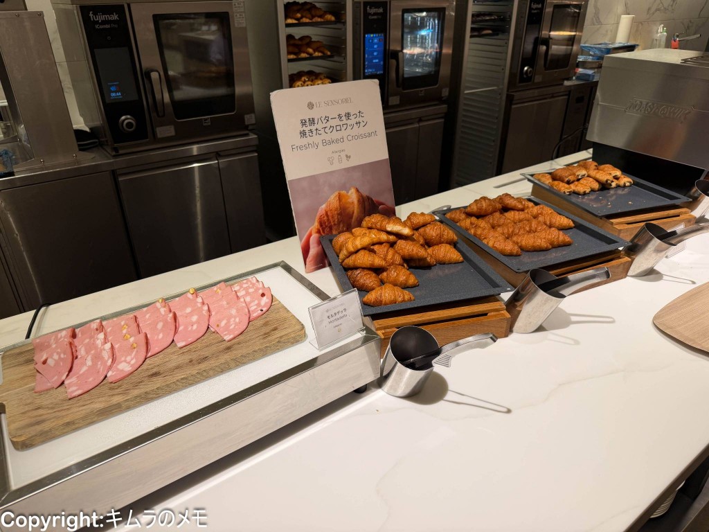 その他にクロワッサンやパンオショコラもあり、こちらは焼きたてを提供するためか、ライブクッキングコーナー近くに用意されている。