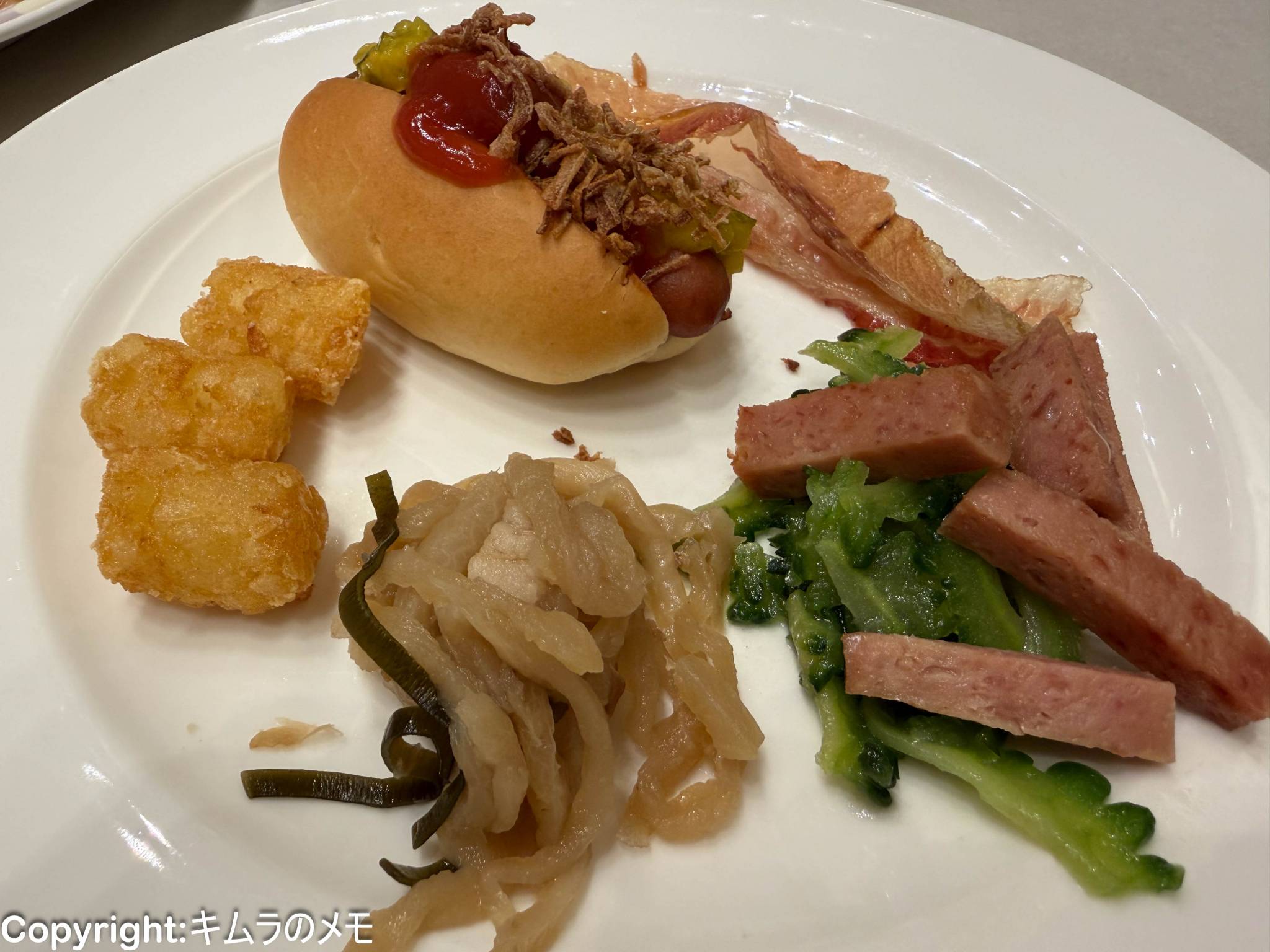 洋食メニューも定番のソーセージやハッシュドポテトなど、きっちりと用意されている。