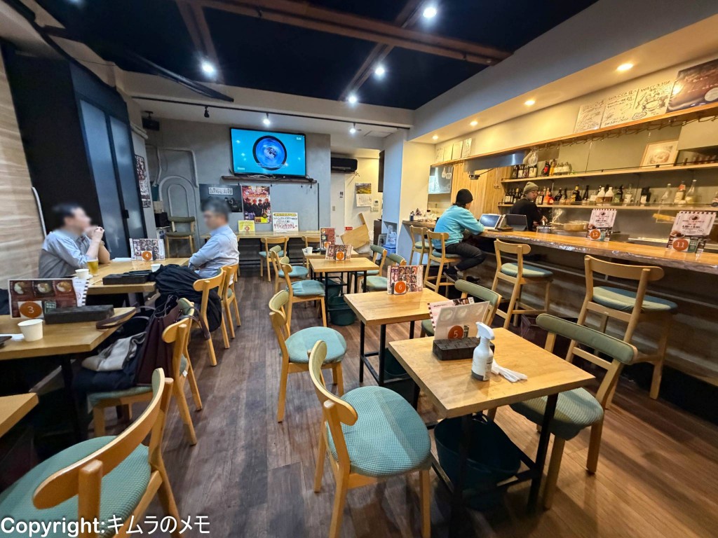 シンプルにまとめられた店内にはテーブル席が規則正しく配置されており、スペースを有効に活用している。