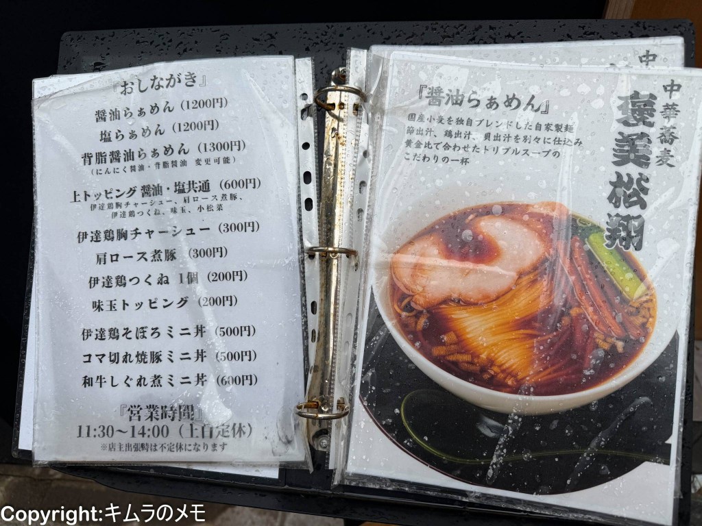 ただ、店舗前にはラーメンのメニューが置かれているので、注意してみればこちらがラーメン店であることに気付く。