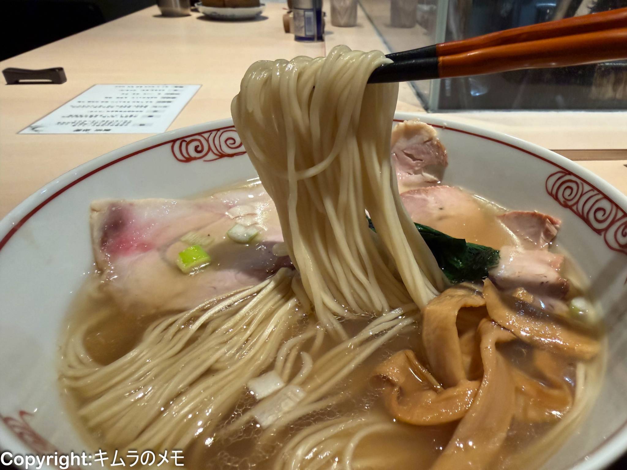 ツルツル感がある小麦の風味を豊かに感じられるもので、濃厚なスープとの相性もよく、上品な味わい。