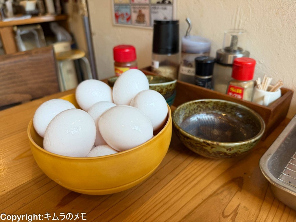 席には生卵が置かれており、1個は無料サービスで頂ける。