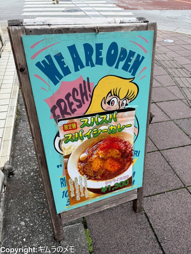 そして期間で変わる限定メニューもあり、この時は「スパスパスパイシーカレー」ということでベースメニューであるトルネコラーメンにスパイスカレーを融合させたラーメンのよう。